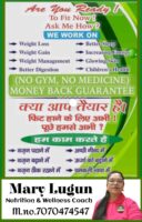 नमस्ते, मैं मेरी लुगुन, आपकी अपनी न्यूट्रिशन एंड वेलनेस कोच, रांची से।